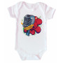 En vit bodys till baby med motiv på en mick och banderoll med texten "Rock'n'roll" tryckt på plaggets framsida. Tillverkad i 100% bomull och finns i 3 st olika storlekar: 0-3 månader (50/56), 3-6 månader (62/68) och 6-12 månader (74/80).