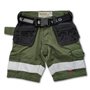 Slitstark och vattenavvisande arbetsshorts till barn som är gröna med svarta detaljer. Två hängande spikfickor med flera fack, som dessutom är undanstoppningsbara. Detaljer så som hammarhankar, mobilhållare, tumstock- och pennficka samt sidfickor, varav en med lock och tryckknapp. Loxy®-reflexer löper runt vardera ben så att du kan vara säker på att ditt barn får bästa förutsättning till att synas i mörker. Ställbart bälte som är lätt att justera ingår. Finns i 6 st olika storlekar mellan 90-140.