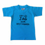 En kortärmad t-shirt som är blå med texten "Det är jag som bestämmer" tryckt i svart på plaggets framsida. Tröjan är tillverkad i 100% bomull och finns i 5 st olika storlekar mellan 70 - 120.
